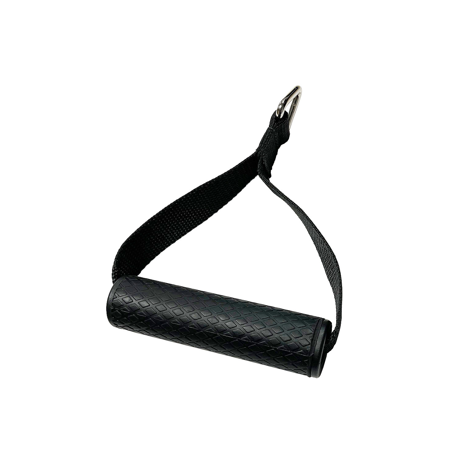 Lättroterande enhandsgrep för kabelmaskiner. Handtaget har en hård plastkärna med ett mjukt våffelmönsrat överdrag som ger ett optimalt grepp.