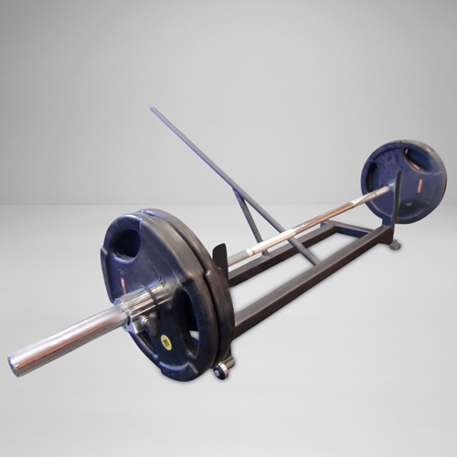 Lifts bar from the ground for fast, easy plate changes. Wheels at the front for easy use.